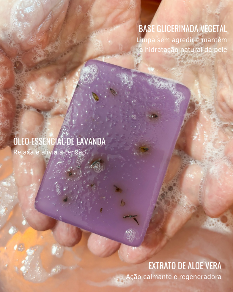 Delicado, natural e aromático: nosso Sabonete em Barra foi desenvolvido para limpar suavemente a pele enquanto oferece um momento de cuidado e conexão com os sentidos. Com base 100% glicerinada vegetal e extrato de aloe vera, sua espuma cremosa deixa a pele macia, perfumada e renovada.
